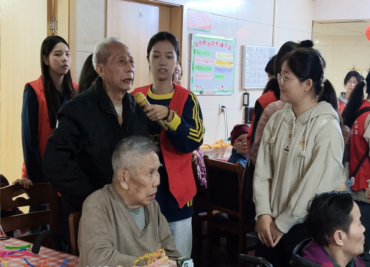 (通讯员:彭丽莉)一个秋意微凉的上午,长沙润济医院(老年养护院)里,正悄然展开一幅温暖的画卷。2025年11月15日,湘旅学院“红小团”的志愿者们在此相聚,以“敬老传情 志愿暖心”为主题,用青春的活力为这个秋日写下了生动的注脚。
